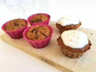 Als je een extra touch aan je cakejes wilt geven kan je nog een “frosting” maken! Maakt het helemaal feestelijk. Meng de ingrediënten van de frosting in een kommetje en proef zelf hoe je de smaak vind. Voor een iets zuurdere smaak kan je wat meer citroensap gebruiken. Of als je het juist zoeter wilt, kan je stevia druppels gebruiken.
