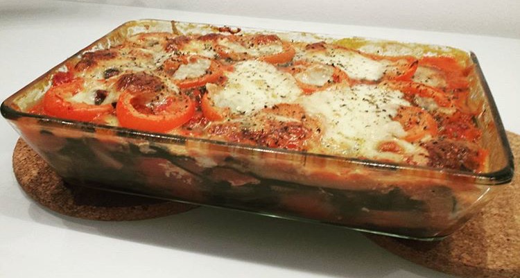 Pak een kleine/middelgrote ovenschaal en leg hierin een laagje tomatensaus. Dit laagje tomatensaus ga je beleggen met de courgette plakjes, net als dat je met lasagne bladen zou doen. Op het laagje courgette smeer je een laagje “kaassaus” aka de ricotta. Dit blijf je herhalen tot je sauzen en courgette bladen op zijn. Ik ben geĂ«indigd met een laagje tomatensaus. De bovenste laag tomatensaus heb ik namelijk belegd met plakjes mozzarella en een paar blaadjes verse basilicum. De parmezaanse kaas die nog over is strooi je hier ook nog over heen (klinkt heel moddervet, maar valt echt mee per stukje haha). Ik heb ook nog wat gedroogde italiaanse kruiden over de mozzarella gestrooid, zodat het lekker typisch italiaans smaakt.