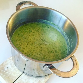 Pureer de soep in de pan, zodat je een glad mengsel krijgt. Maak de soep op smaak met je favoriete kruiden, zoals zout, peper, chilikruiden enz. Voeg ongeveer 100 gr smeerkaas toe aan de soep en roer nog even goed door. De smeerkaas kan je ook weg laten, maar hierdoor wordt de soep lekker romig. Een beetje vet mag best wel! Super veel vitamientjes en een lekker groen soepje!