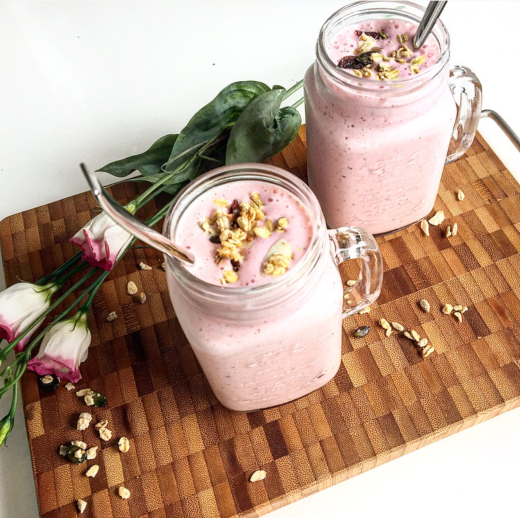 Mix goed door tot je een glad mengsel hebt. Serveer eventueel nog met wat granola. Ik had best wel trek, dus heb in de shake wat granola gedaan en met een lepel op gegeten hihi. Als je er niks aan toevoegt kan je het lekker met een rietje opdrinken!