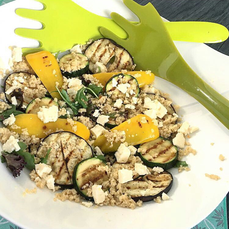 Groenten uit de grillpan zijn zo lekker! Daarom dacht ik laat ik er eens een salade van maken. Je kan natuurlijk verschillende groenten gebruiken die je lekker vindt. In deze salade heb ik paprika, courgette en aubergine gebruikt. Om de salade wat voller te make heb ik er couscous en feta aan toegevoegd. Om te smullen! Lekker als lunch of als licht diner.