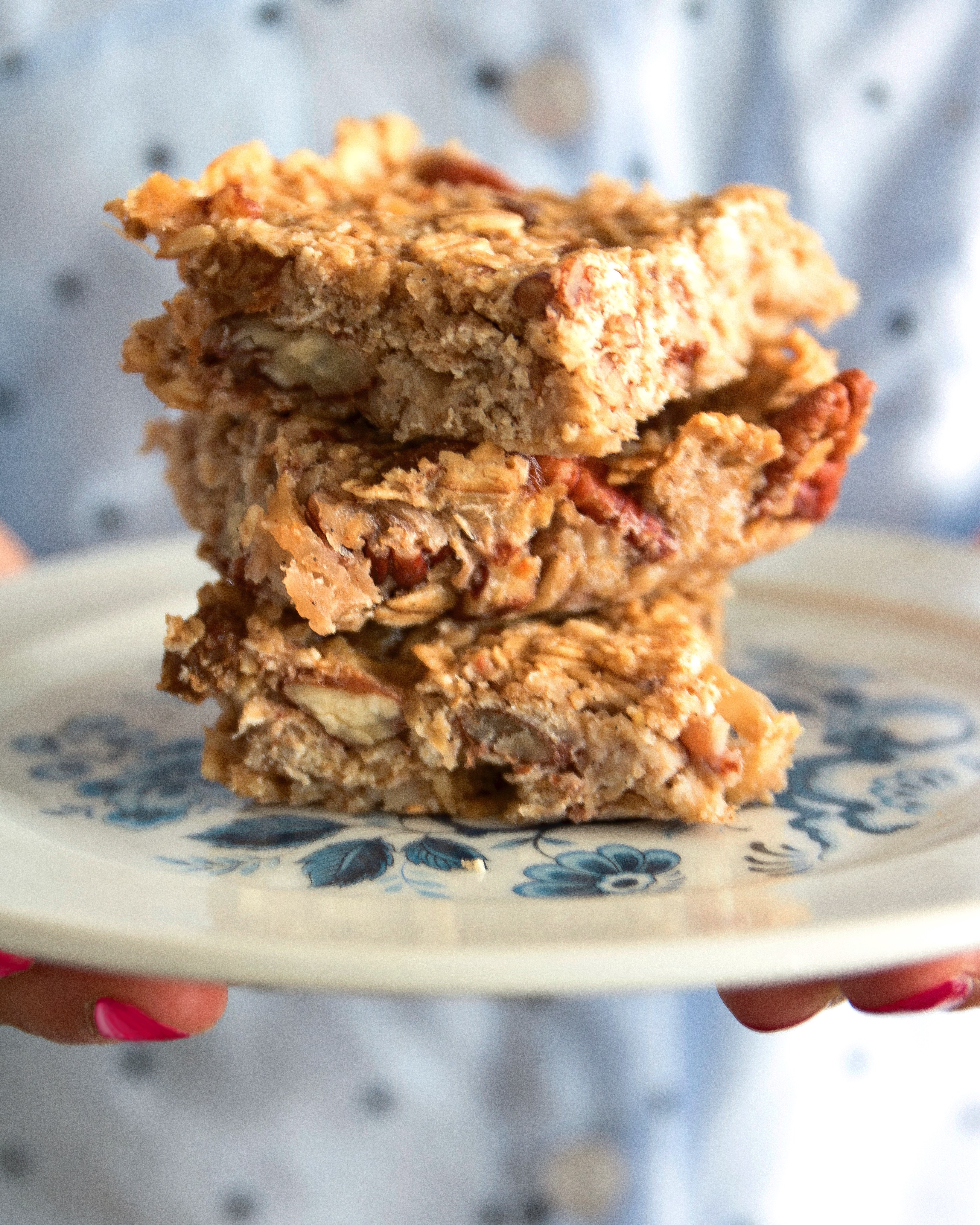 3. Meng de havermout, havervlokken & pecannoten. Meng hier de gewelde rozijnen, het kaneel en een mespuntje zout doorheen.