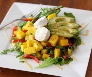 Deze simpele salade met mango, avocado en geitenkaas is echt mijn favoriet. Ik maak deze heel vaak, omdat hij simpel is, maar erg lekker! De zachte romige smaak van de avocado, het zoete van de mango en het hartige van de geitenkaas zijn voor mij echt een gouden combi. Ik zou zeggen, proef het zelf eens! Houd je niet van geitenkaas? Vervang het dan bijvoorbeeld voor feta!