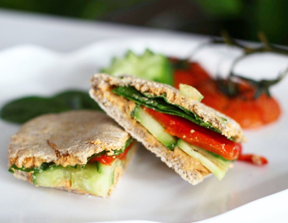 - Verdeel de groenten over de pita en vouw hem dicht.