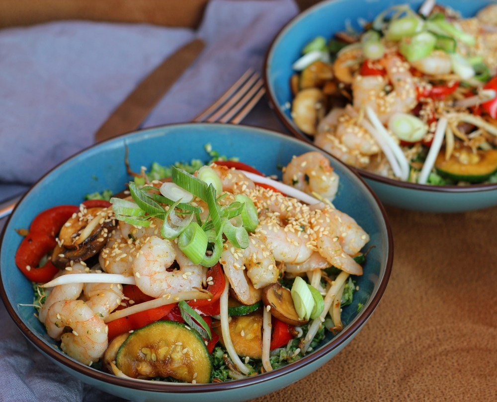 Ooooh jongens dit was echt mega lekker! Zo leuk hoe ik gewoon maar wat in elkaar heb geflanst. Ik wilde een koolhydraat arme maaltijd maken dus ik dacht aan broccoli rijst. Kennen jullie dit al? Dit koop je gewoon kant en klaar in de supermarkt (ik haalde het bij Lidl). Je hoeft het maar 2 minuten te wokken, dus het is zo klaar. Verder deed ik er nog heel veel andere groenten bij én garnalen. Lees snel verder hoe je dit lekkere recept maakt.