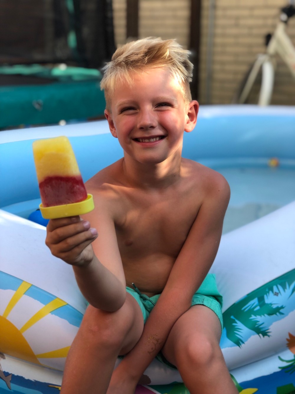 Welke kids vragen er nou niet om ijsjes met dit warme weer?? Nou die van mij constant, haha. Toen vroeg Luca aan mij, kunnen we niet zelf ijsjes maken? Want dat had hij wel eens gezien op Youtube. Dus dit idee om ijsjes te maken komt helemaal van Luca zelf. Je kan zelf kiezen welk soort fruit je kiest voor de ijsjes.