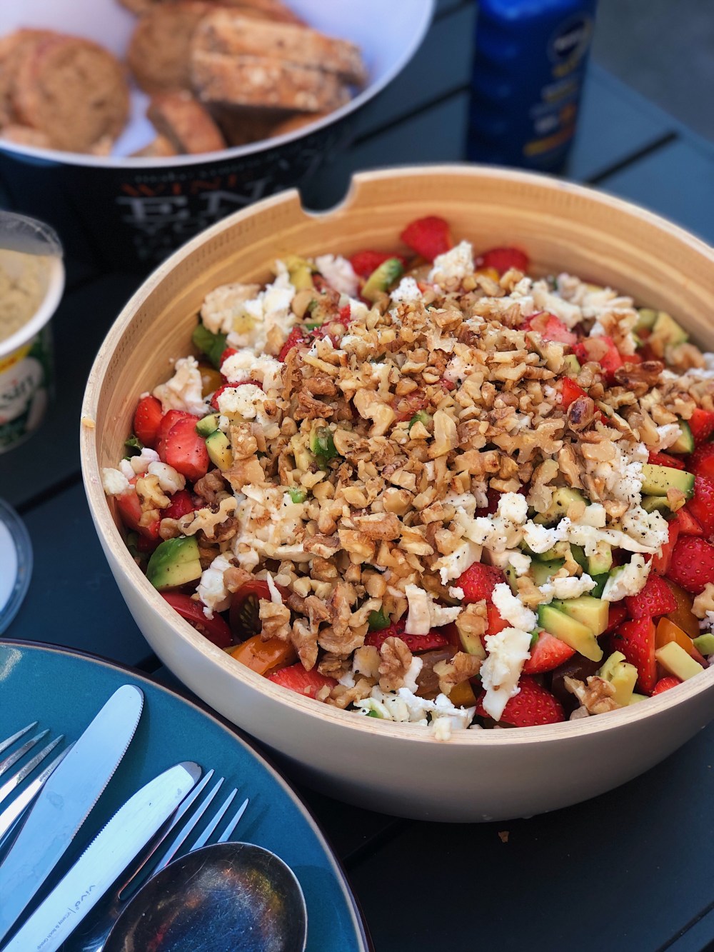 Wie gaat er deze Hemelvaartsdag aan de bbq?! Hallo 26 graden vandaag, we hebben het verdiend jongens! Ik vind het heerlijk om een frisse salade te eten bij de bbq. Simpel en lekker! Jij ook? Ik heb geen precieze aantallen omdat ik vaak gewoon wat bij elkaar gooi en er dan ineens iets lekkers uit rol. Stop er gewoon zoveel in als je zelf lekker vindt!